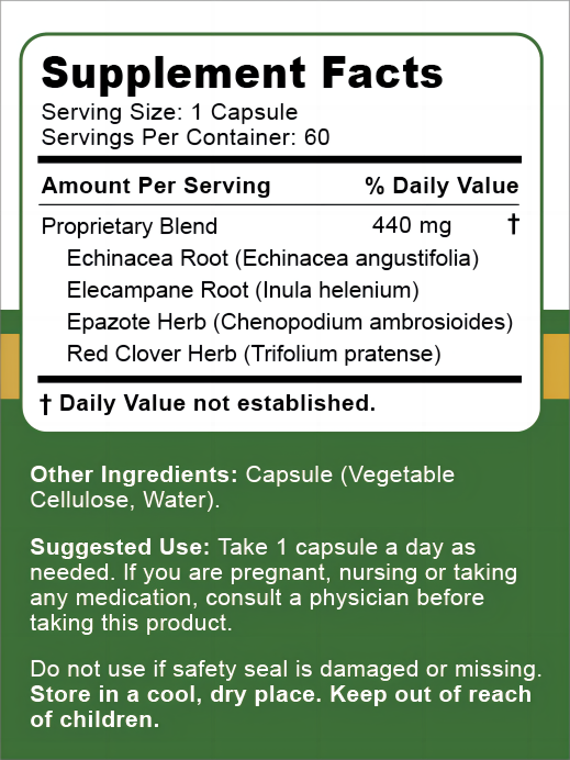 紫錐菊、土木香、土荊芥和紅三葉草等草本配方幫助修復(fù)肺和鼻竇組織損傷,增強(qiáng)免疫系統(tǒng)。